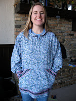 This is the kuspuk I made for me. I *love* it!! It is so roomy & comfy; no wonder native Alaskan women wear them. Traditionally they are worn over other clothes as an outer, protective garment. Traditional kuspuks have a ruffled skirt at the bottom, but I learned that more modern AK native women opt to leave the skirt off. While you might not be able to tell from the photo, this kuspuk has a zipper - the first I've ever installed - I was proud to say the least! This was a fun & relatively fast project. I have another kuspuk just about finished (just need to hem up the hood lining - we know how much I love hand sewing!) & fabric to make another for me & one for my 7 year old.FO #2.5 - Orion's Kuspuk